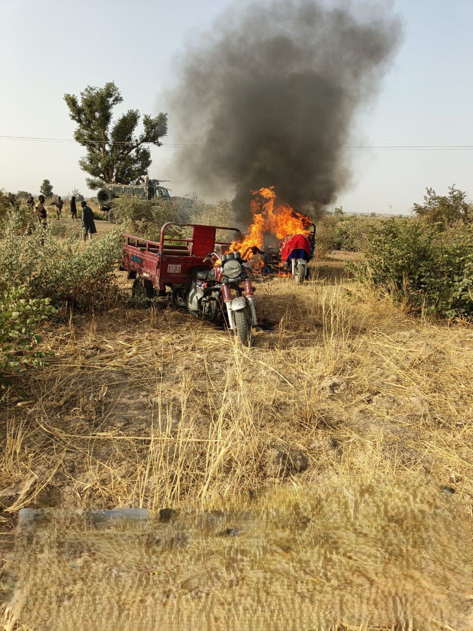 2 véhicules et 5 tricycles de transport détruits
