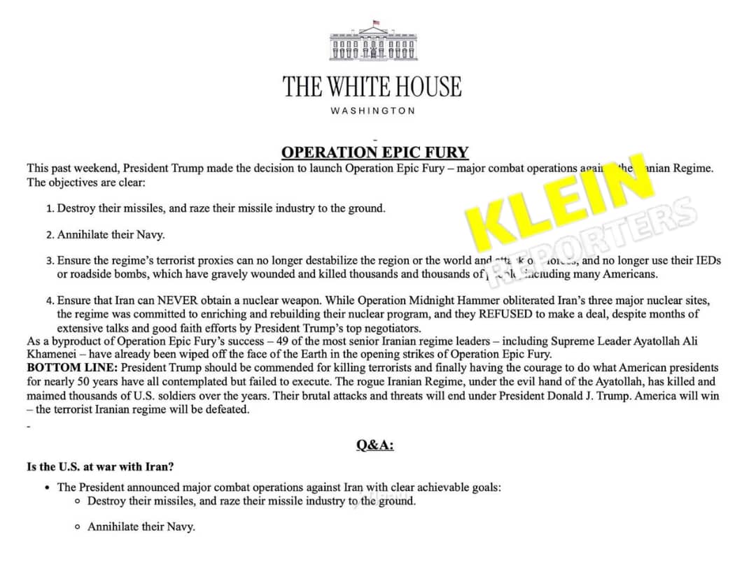 La Maison Blanche a présenté les objectifs de l’opération Epic Fury